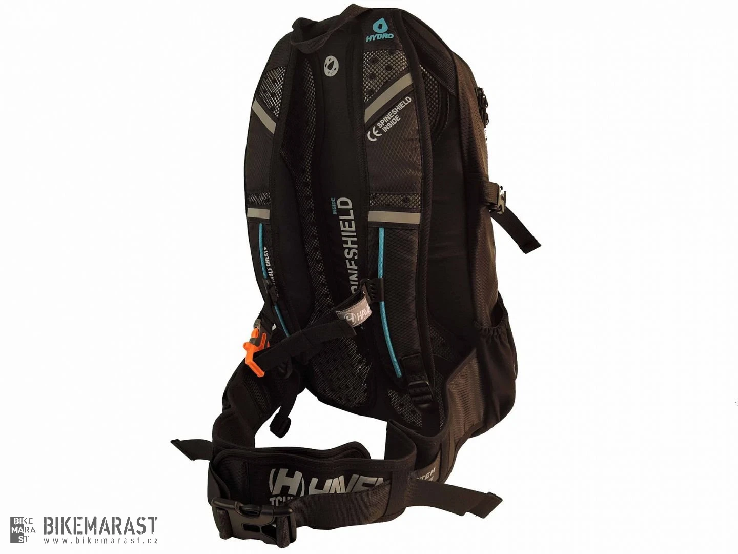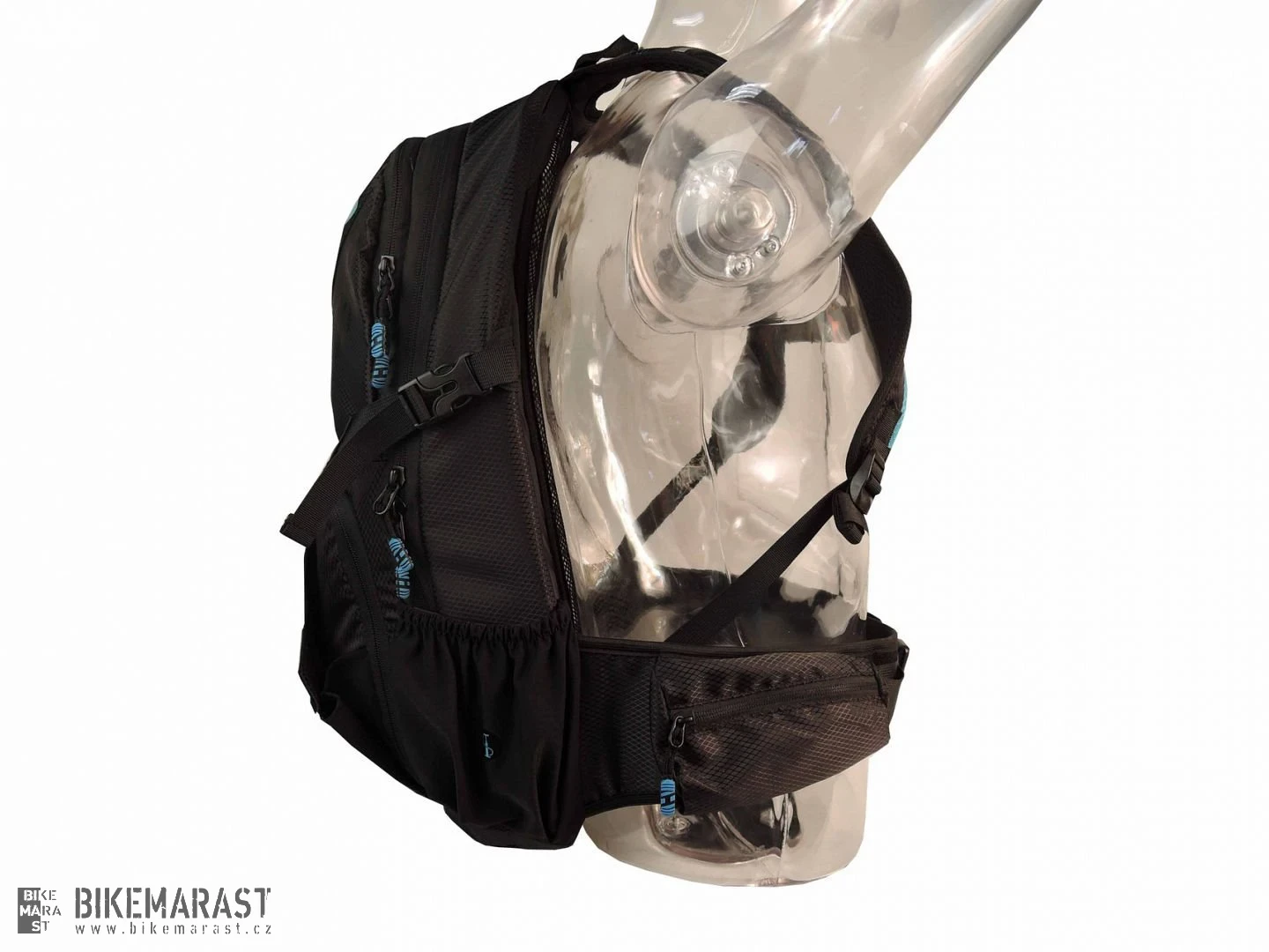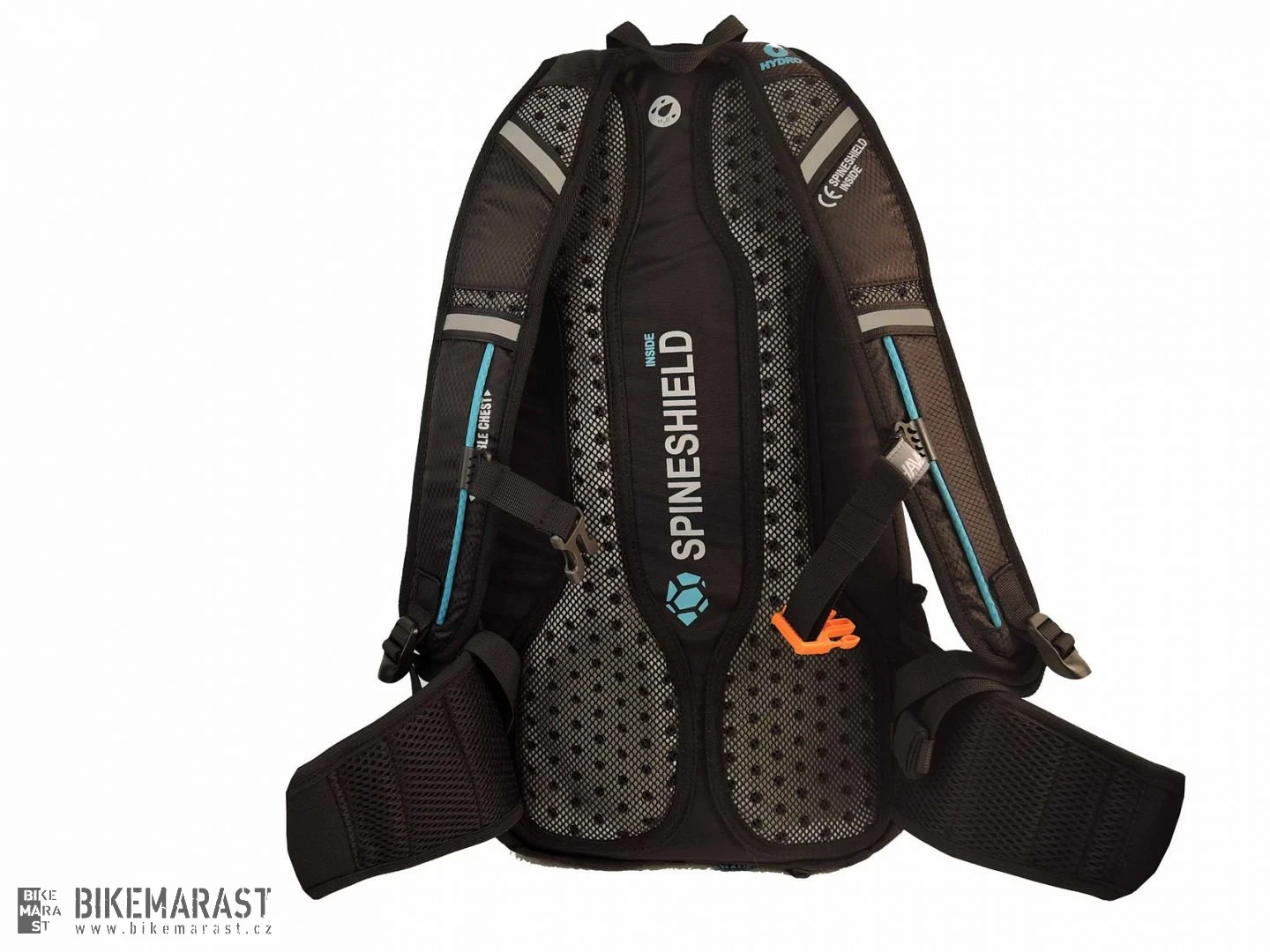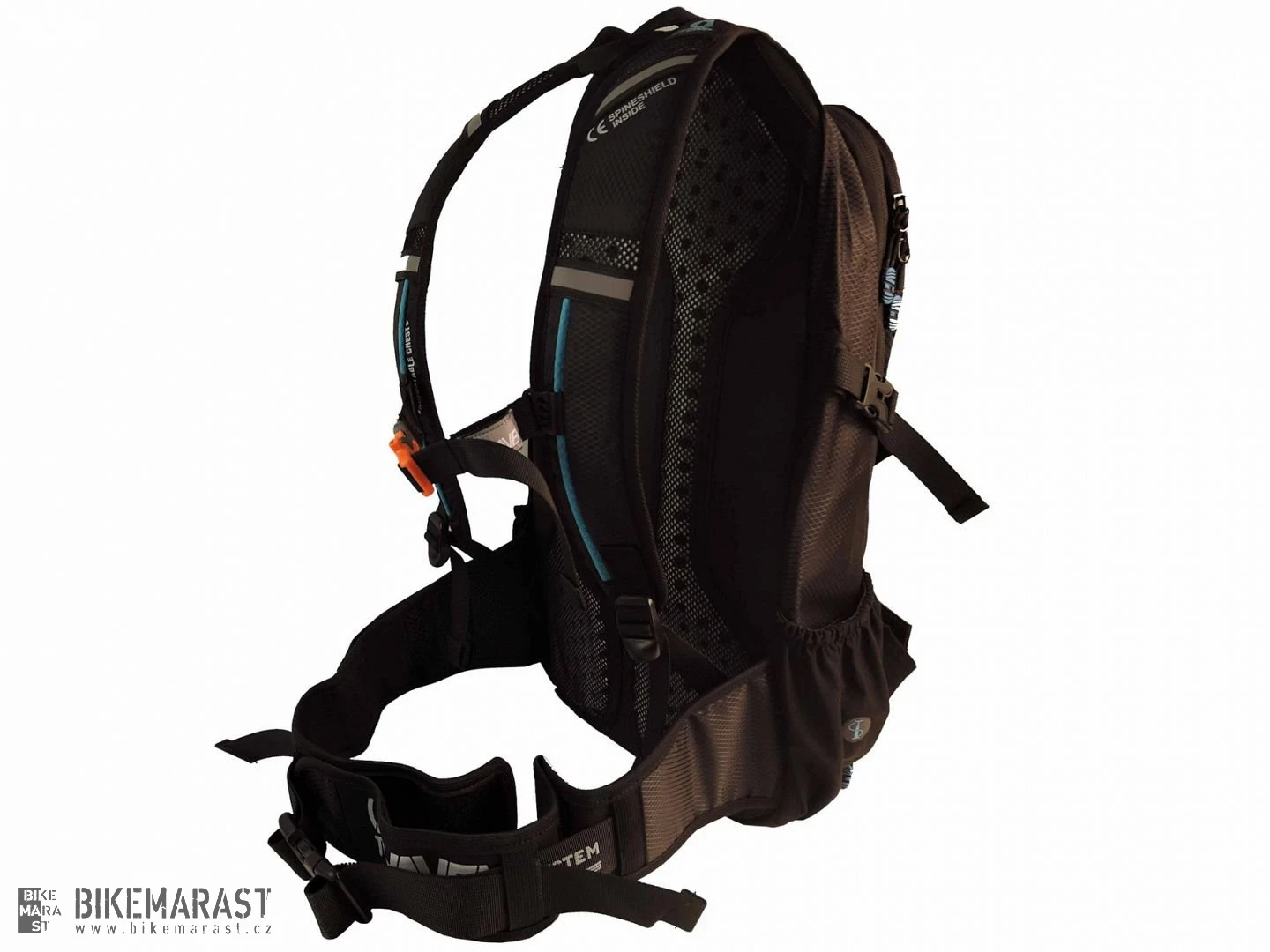 - nastavitelné ramenní popruhy: polstry s větracími otvory, plně nastavitelný hrudní pás, poutka pro uchycení hadičky a náustku vodního rezervoáru