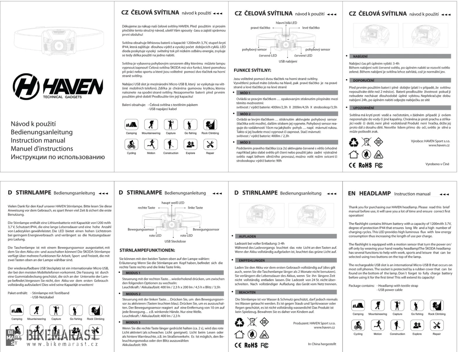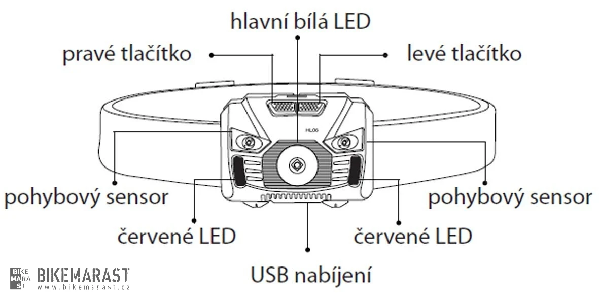 - Čelovka je vybavena pohybovým senzorem díky kterému můžete světlo vypnout/zapnout