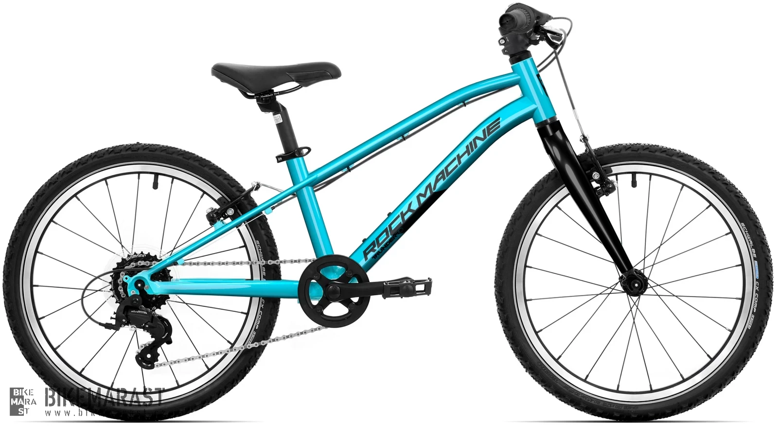Lehká rychlá 20“ s pevnou vidlicí a ráfkovými brzdami pro zábavnou jízdu v lehčím terénu. Kolo je vybavené lehkými výplety, které usnadňují rozjezd a výrazně odlehčují celé kolo, což vaši malí jezdci ocení v kopcích. Thunder 20 je dále vybaven novým řazením MicroSHIFT s jednoduchou obsluhou a kvalitními plášti Schwalbe s reflexním páskem, aby byli mrňousci lépe vidět.