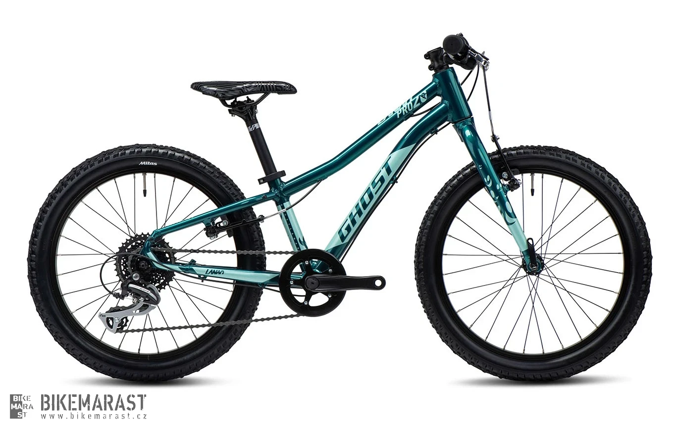 Dívčí 20palcové kolo GHOST Lanao 20 Pro s nízkou hmotností a minimálními nároky na údržbu. Geometrie rámu a krátký představec splňují poslední trendy v oblasti MTB a umožňují vzpřímený posed.
