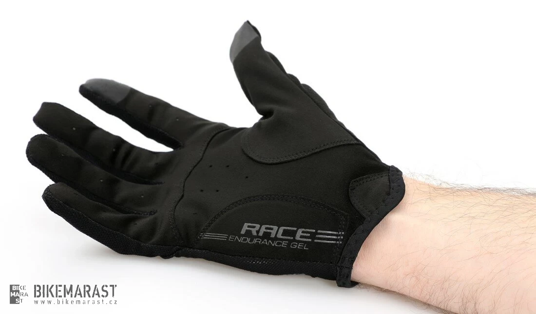 Ovládání telefonu v rukavicích? Žádný problém! Dotyková úprava na palci a ukazováčku umožňuje přesně ovládat jakékoliv chytré zařízení. Speciální vrstva tenkého tlumícího gelu "RACE ENDURACE GEL" na vnější části dlaně uleví rukám v nejvíce exponováné části a zároveň nijak neovlivňuje úchop řidítek. Rukavice jsou tak ideální pro jezdce, kteří očekávají dokonalý cit mezi rukou a řidítkem.