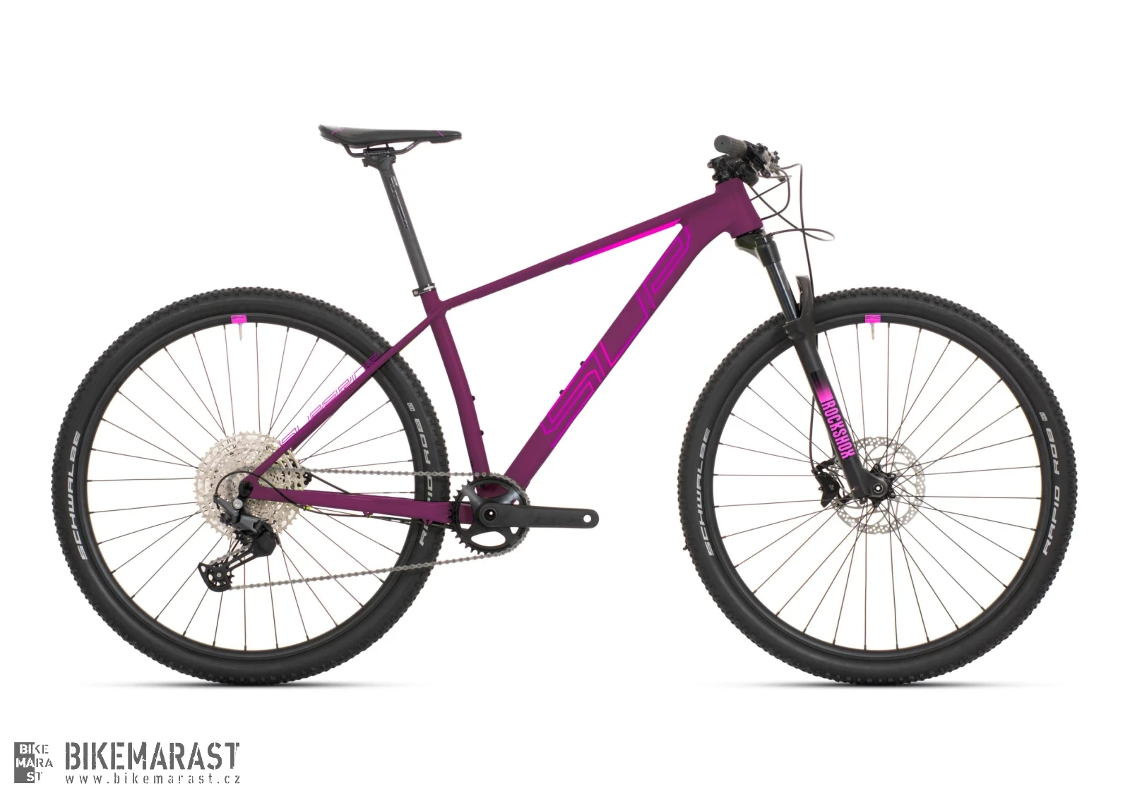 - Širší pláště Schwalbe Racing Raplh pro jistější a komfortnější jízdu v těžkém terénu