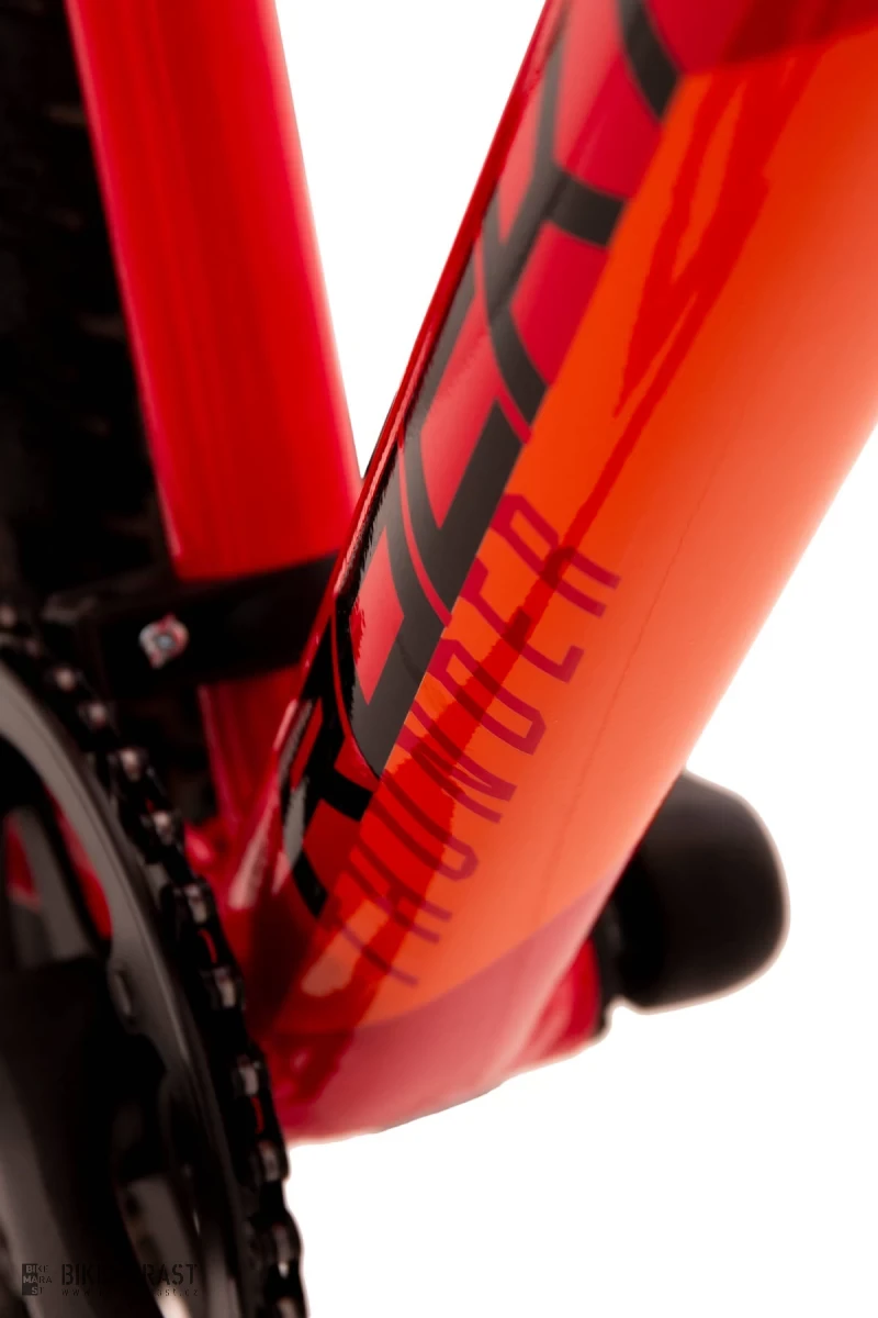 Rychlý juniorský 27,5“ bajk s pevnou vidlicí stavěný na nízkou hmotnost a s ohledem na dostupnou cenu. Lehký a tuhý hliníkový rám, vidlice s Junior Trail geometrií pro snadnou ovladatelnost v terénu a rychlost na zpevněných cestách dělají z Thundera parťáky na dlouhé výlety. Snadno ovladatelné převody 1×9 se slušným rozsahem je maximálně intuitivní. Rychlé obutí s jemným vzorkem pro univerzálnost na trailu i cyklostezce.