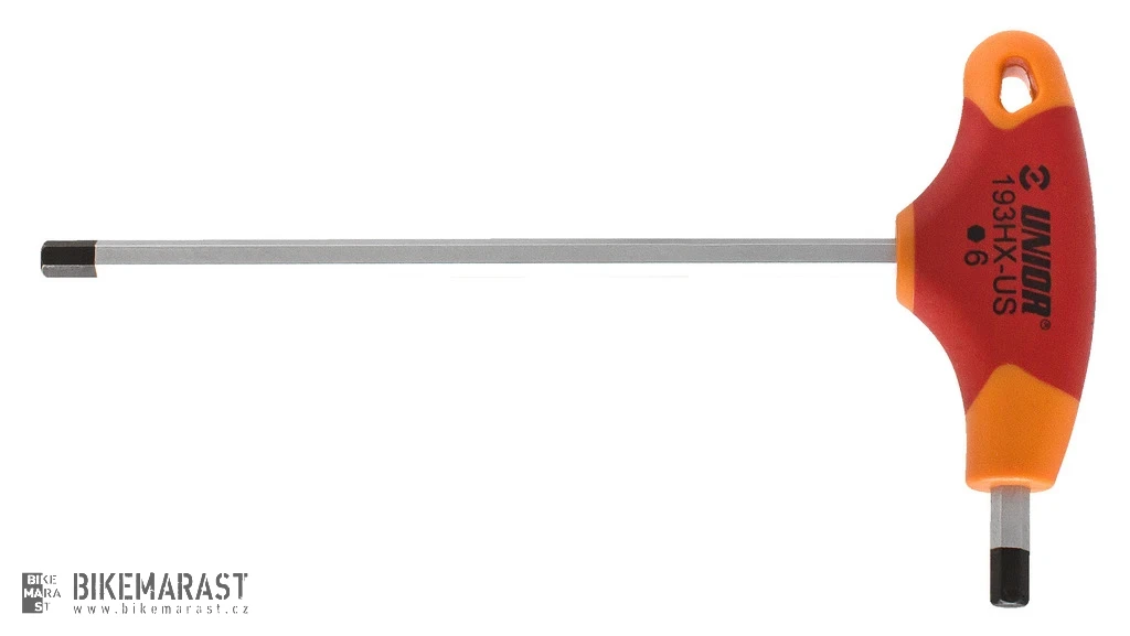 dvoustranný šestihranný klíč 5 mm ergonomicky tvarovaná rukojeť ve tvaru T celková délka: 188 mm materiál klíče: chrom vanadová ocel, chromováno materiál rukojeti: polypropylen hmotnost: 56 g, baleno na kartě UNIOR určeno k PROFI použití vyrobeno ve Slovinsku