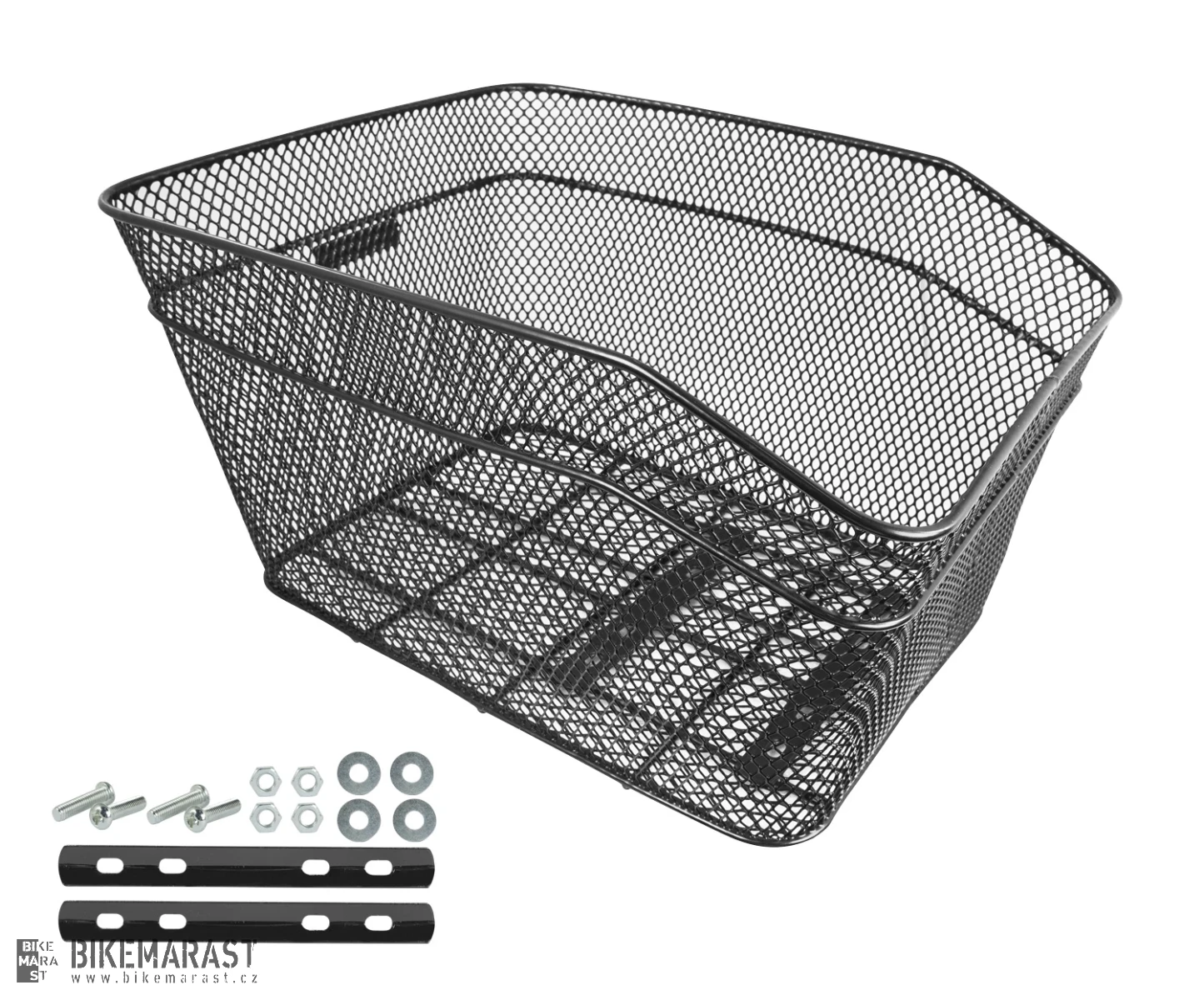 černý košík na nosič, hustá oka