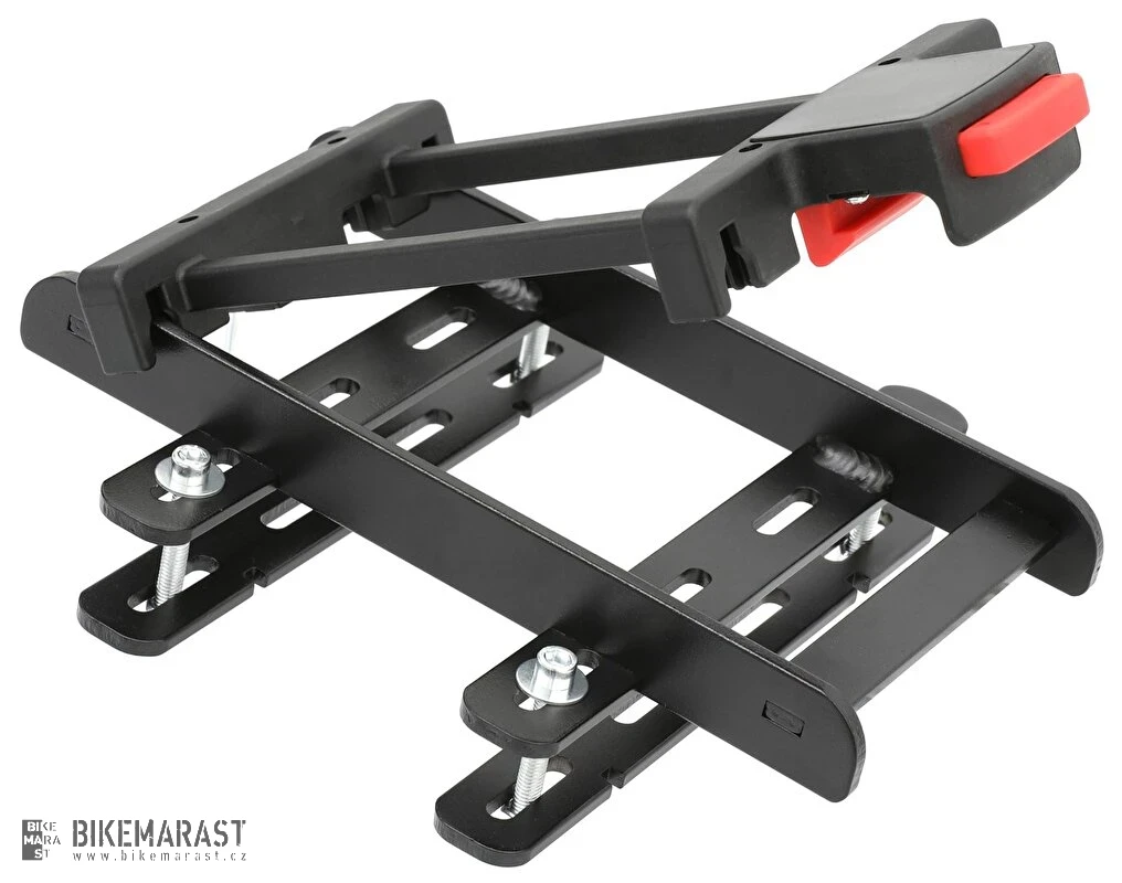 Rychloupínací adaptér FLEXI MAX1 umožní snadné nasazení/sejmutí koše z nosiče jízdních kola, pomocí tlačítka.