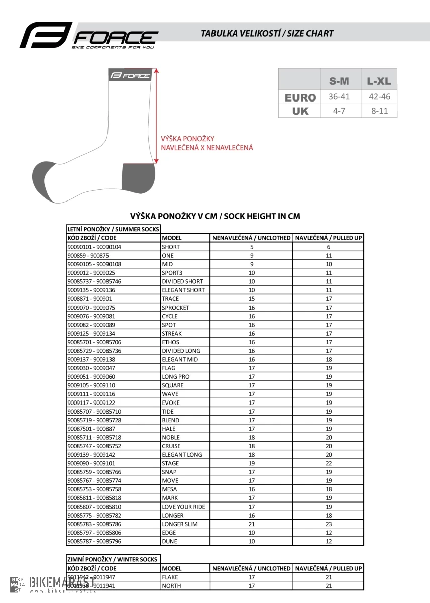 - vyšší cyklistické ponožky FORCE i pro další sporty