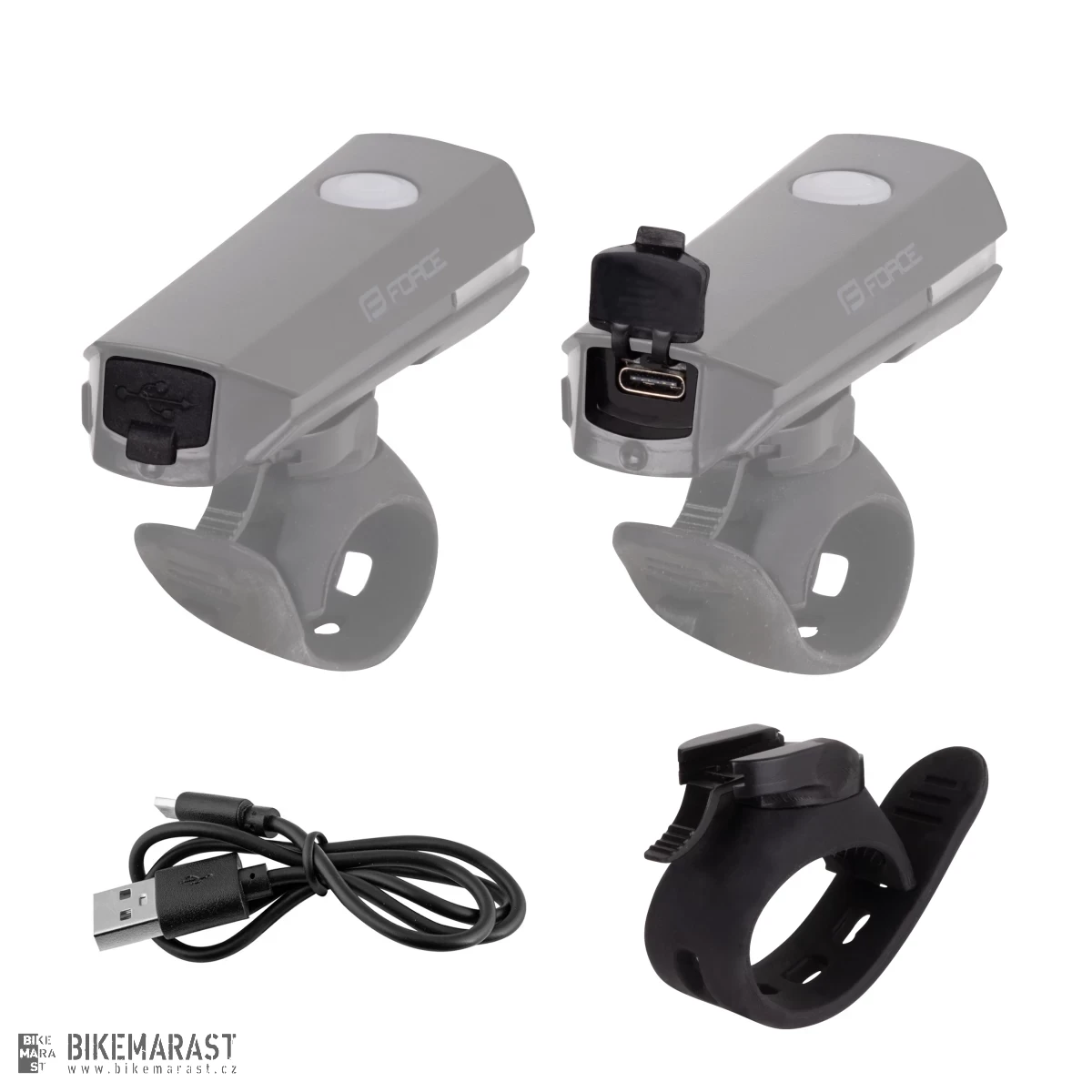 Přední světlo FORCE FLUX 200LM USB, černé