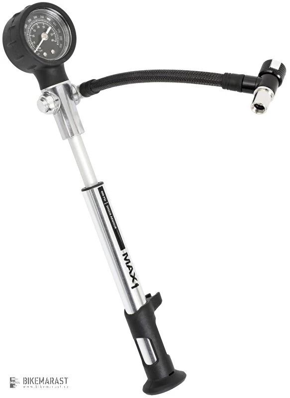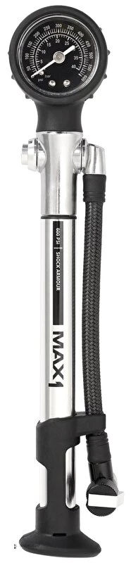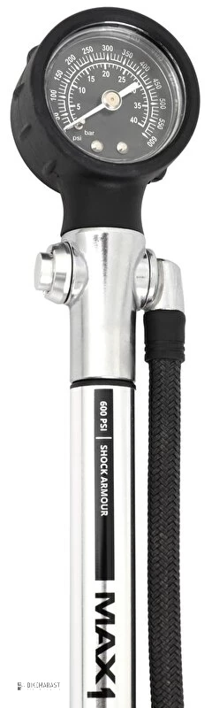 Internetová cena1 012 Kč836 Kč bez DPH Extrémní hustilka MAX1 Shock Armour na tlumiče/odpružené vidlice/teleskopické sedlovky do maximálního tlaku 600 psi. Je vybavena opletenou hadicí, upouštěcím ventilem, díky kterému můžete velice citlivě nastavovat požadované tlaky. Přesný a přehledný manometr měří tlak v jednotkách bar a psi.