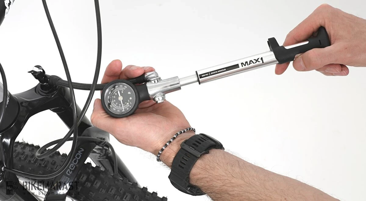 Pumpa na vidlice a tlumiče MAX1 Shock Sport Armour 600 PSI s manometrem