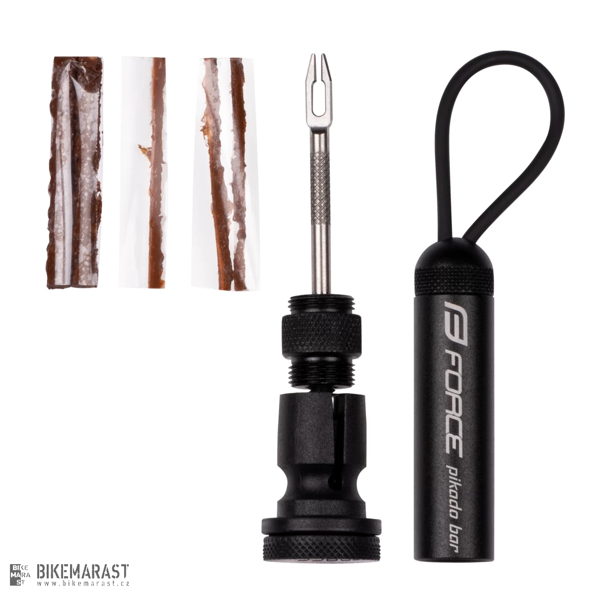- sada FORCE PIKADO BAR pro opravu defektu u bezdušových (tubeless) plášťů optimální pro montáž do Al řidítek , ideální kombinace s art. 38202 a nebo 8946683, obsahuje: