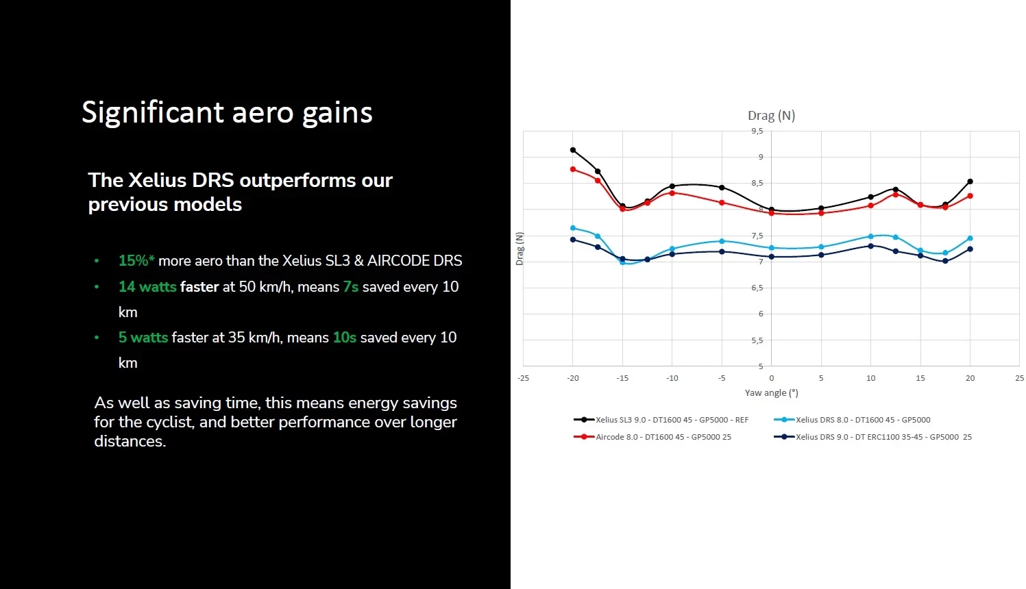 Silniční kola z kategorie AERO se stále více stávají univerzálním nástrojem a postupně vytlačují PERFORMANCE kola. A právě i nový XELIUS DRS sjednocuje a nahrazuje v kolekci LAPIERRE tyto dva segmenty. Data jasně ukazují, že odpor vzduchu je klíčový, a právě tato úspora napomáhá jezdci se zlepšovat a šetřit cenné sekundy, které rozhodují závody.