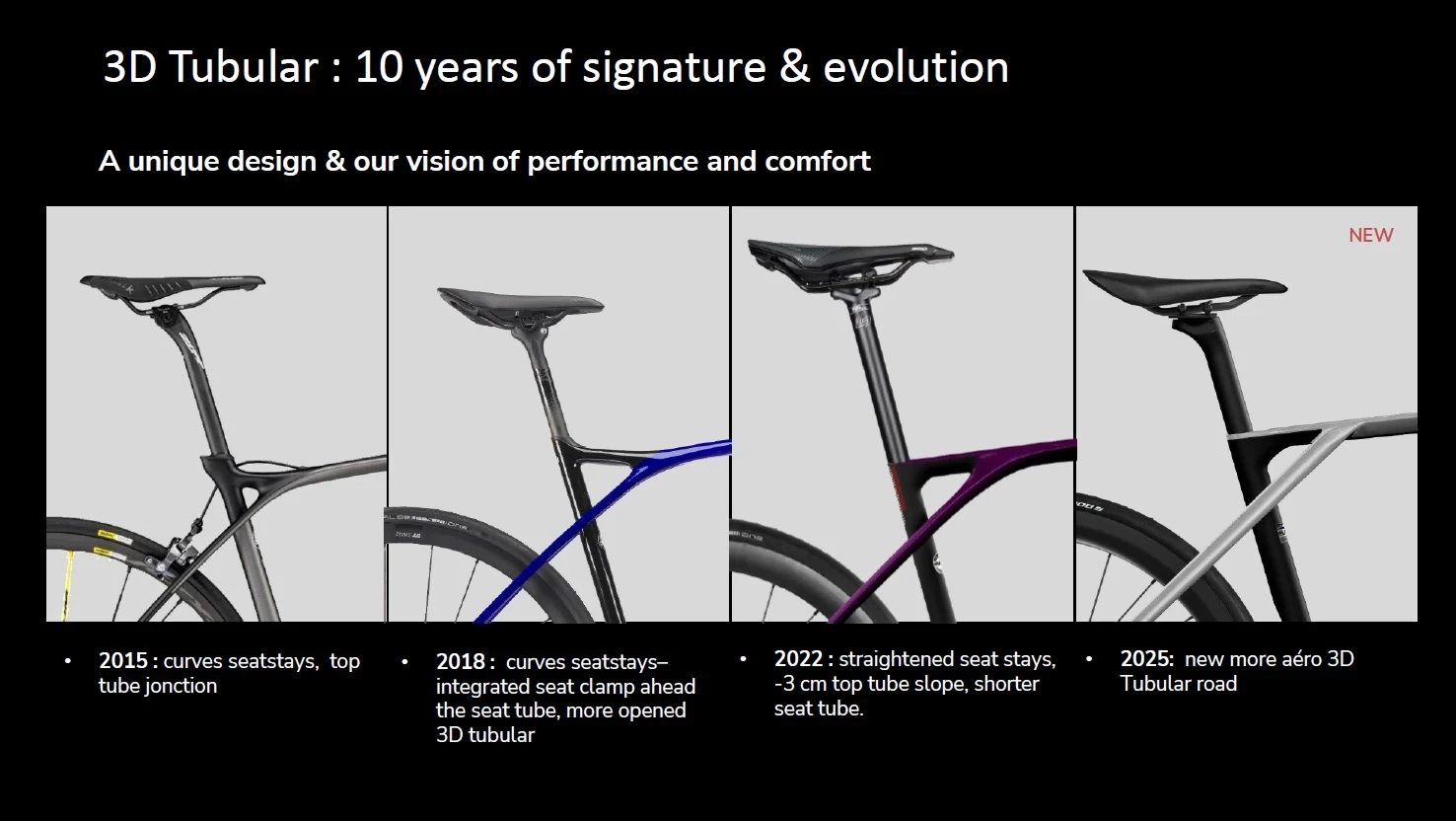 3D Tubular™ To je unikátní a logické napojení sedlových vzpěr na horní rámovou trubku daleko před sedlovkou. Ponechává právě sedlovou trubku po celé své délce volnou a schopnou lépe tlumit vibrace a dodávat jezdci potřebný komfort.