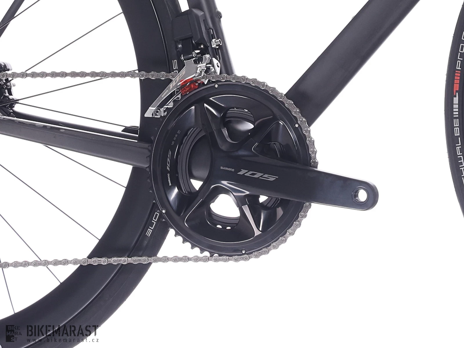 - Pohon Shimano 105 2x12 Di2: kolo je osazeno elektrickou sadou Shimano 105 Di2 s převody 2x12. Tato sada splňuje ty nejnáročnější závodní požadavky. Díky elektrice je řazení navíc rychlejší a bez jakýchkoliv kompromisů.