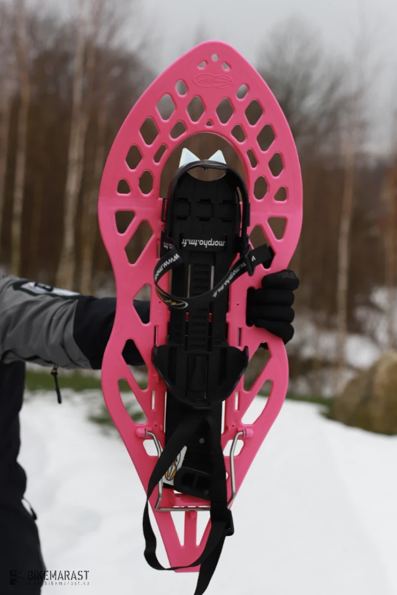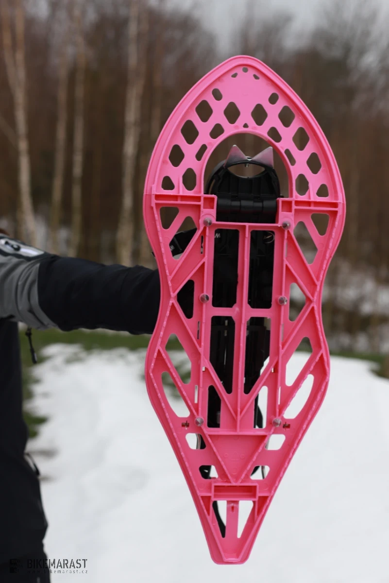 Klasická velikost sněžnic s vylepšeným vázáním, která bude vyhovovat většině uživatelů. Výhodou je rychlé, jednoduché a bezpečné nastavení velikosti bot, špička pomocí pásků, pata pomocí ráčny a ozubeného pásku(stejně jako u snowboardového vázání).